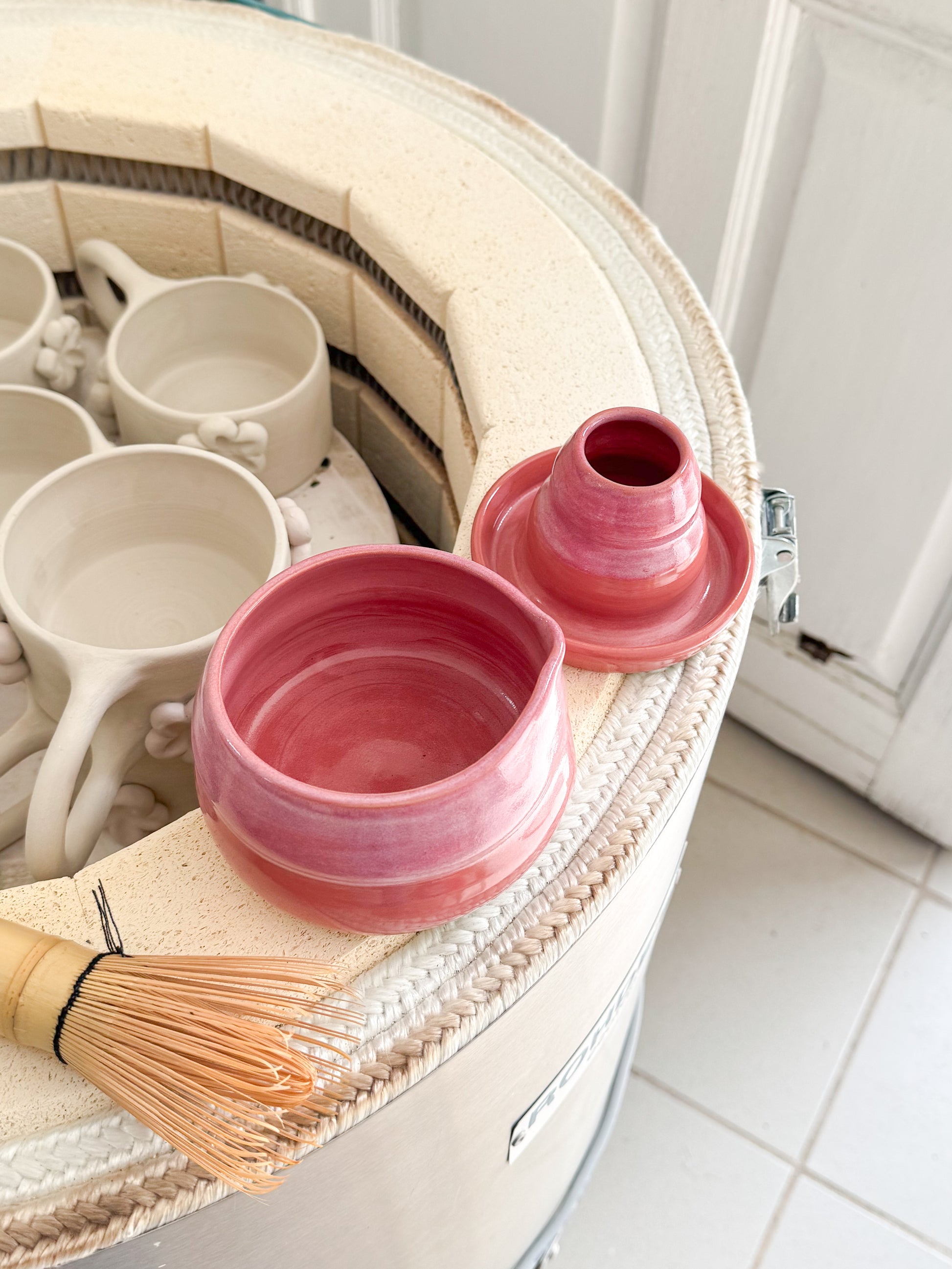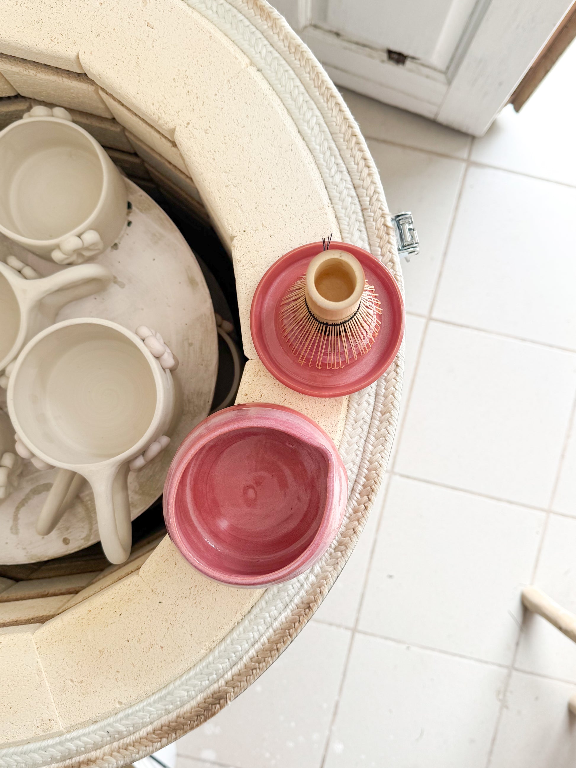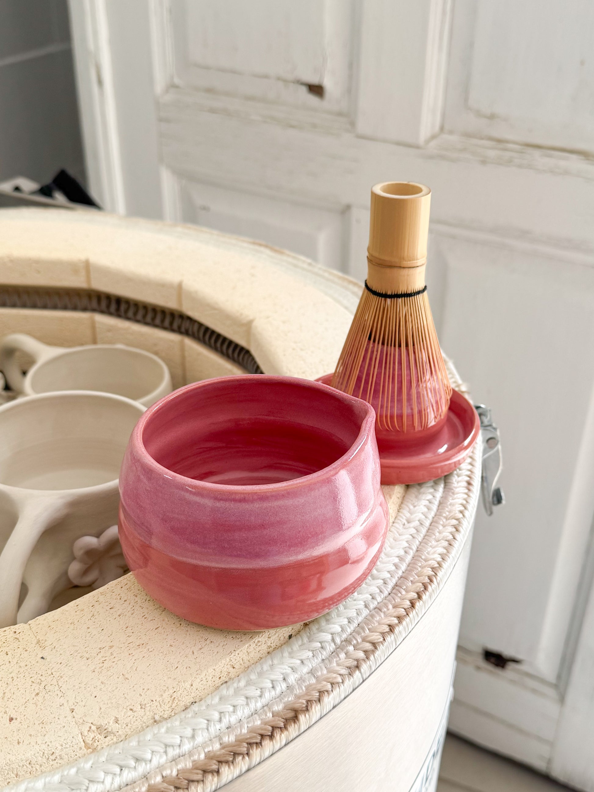 Kit pour le matcha composé d'un porte fouet et d'un bol en grès fabriqués à la main à Landas dans le Nord de la France. Le fouet n'est pas inclus dans le kit.