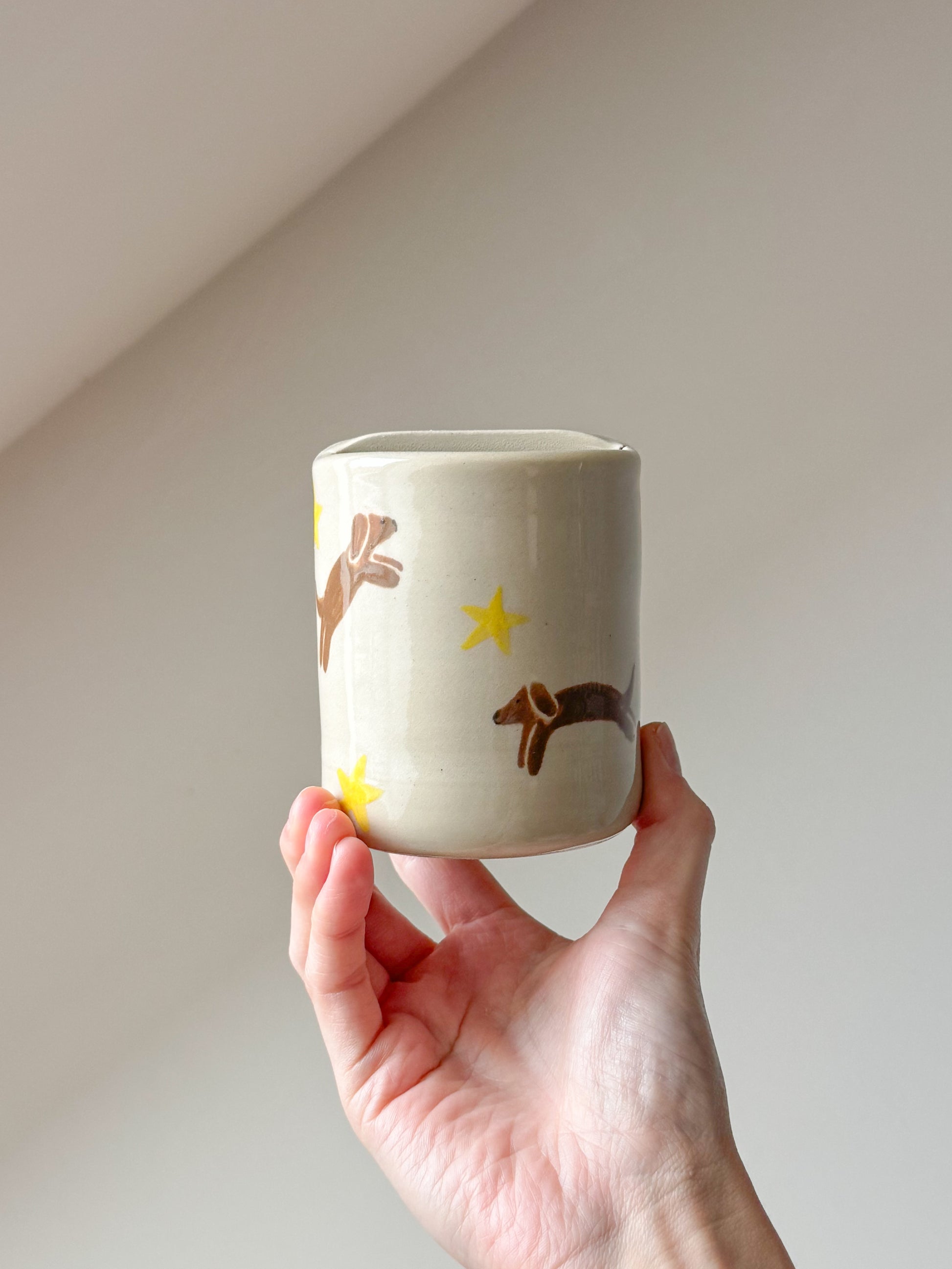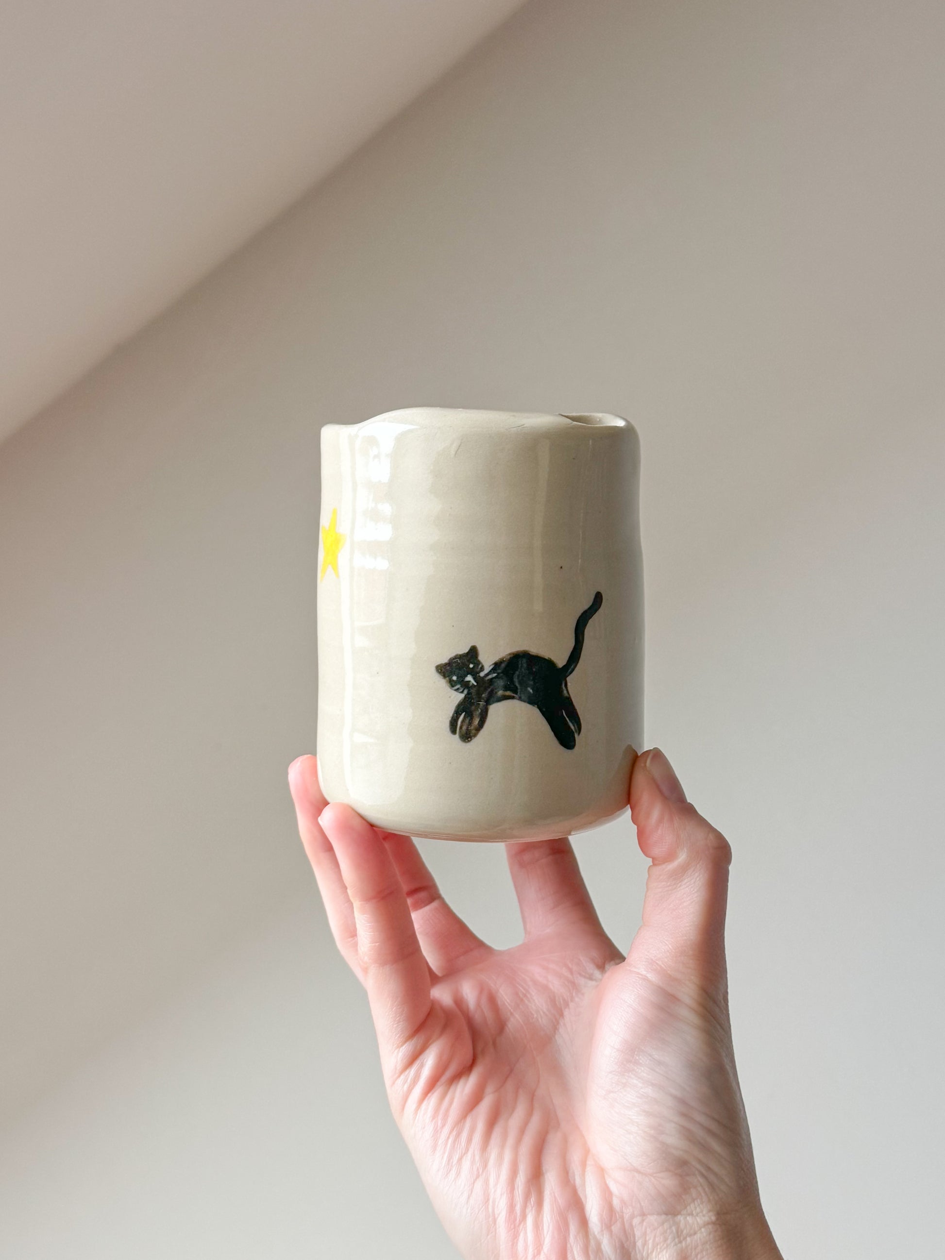 Tasse à emporter en grès fabriquée et peinte à la main dans le nord de la France.