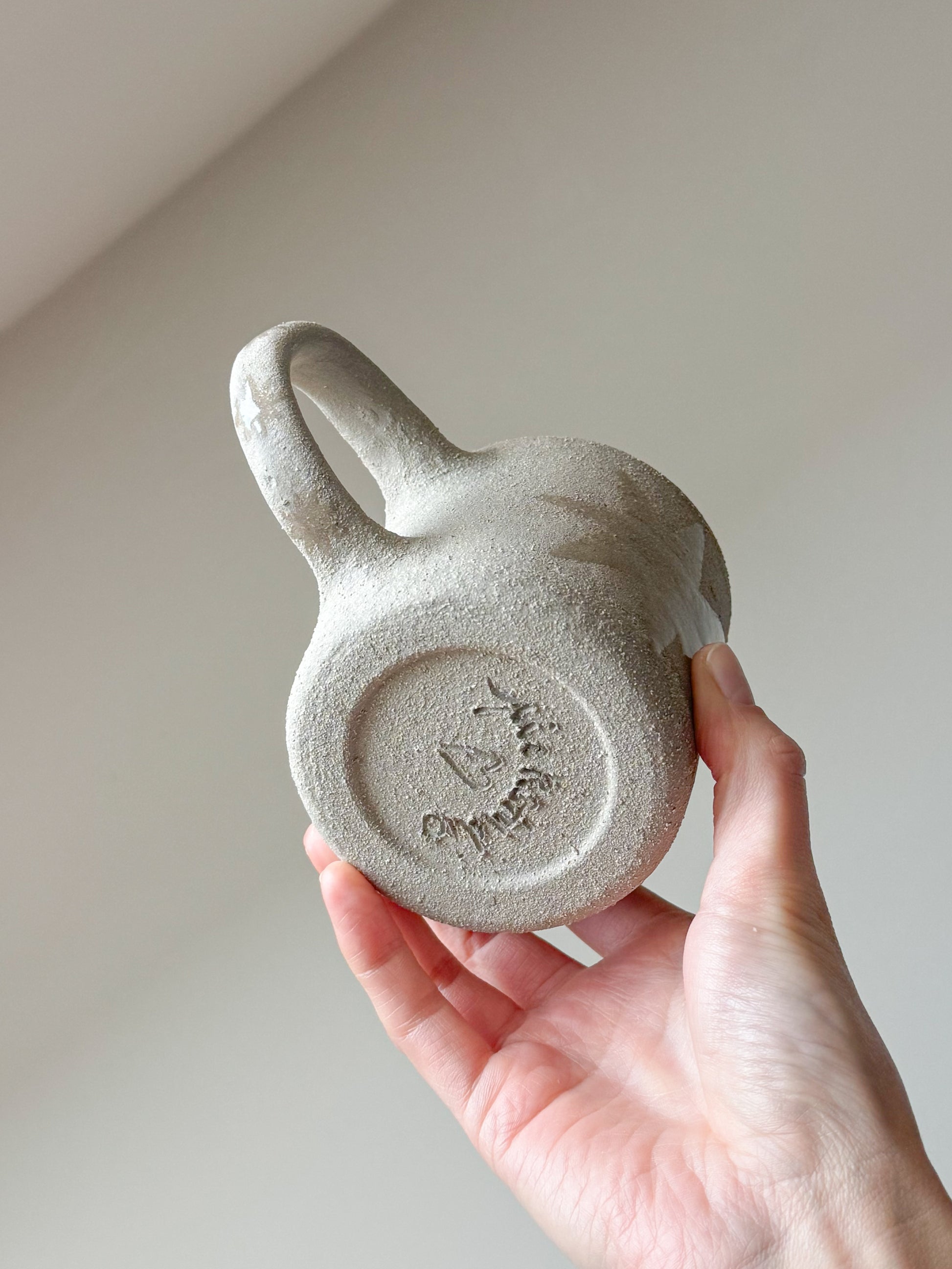 Tasse en grès fabriquée et peinte à la main dans le nord de la France.