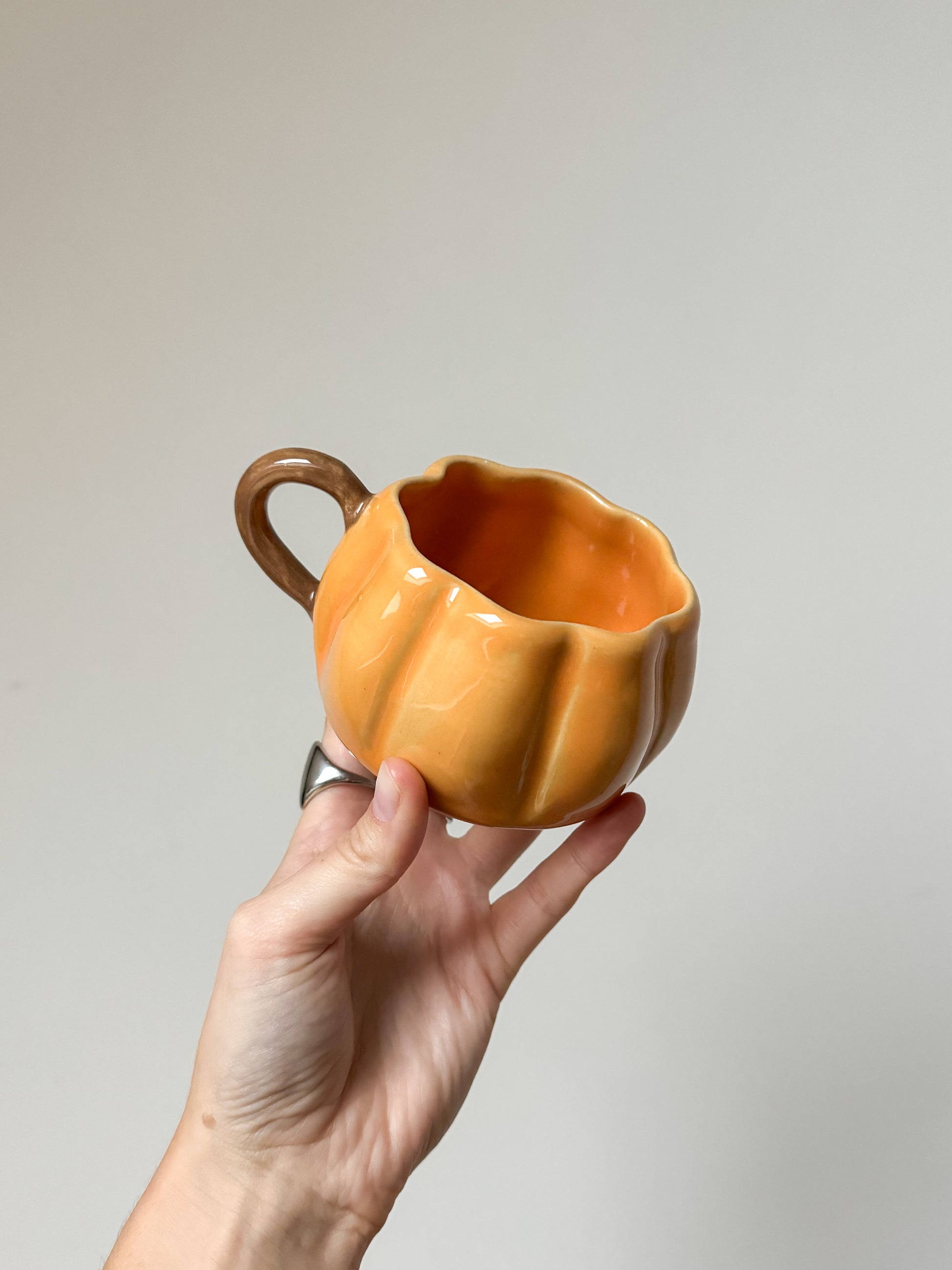 Tasse en grès fabriquée et peinte à la main dans le nord de la France.