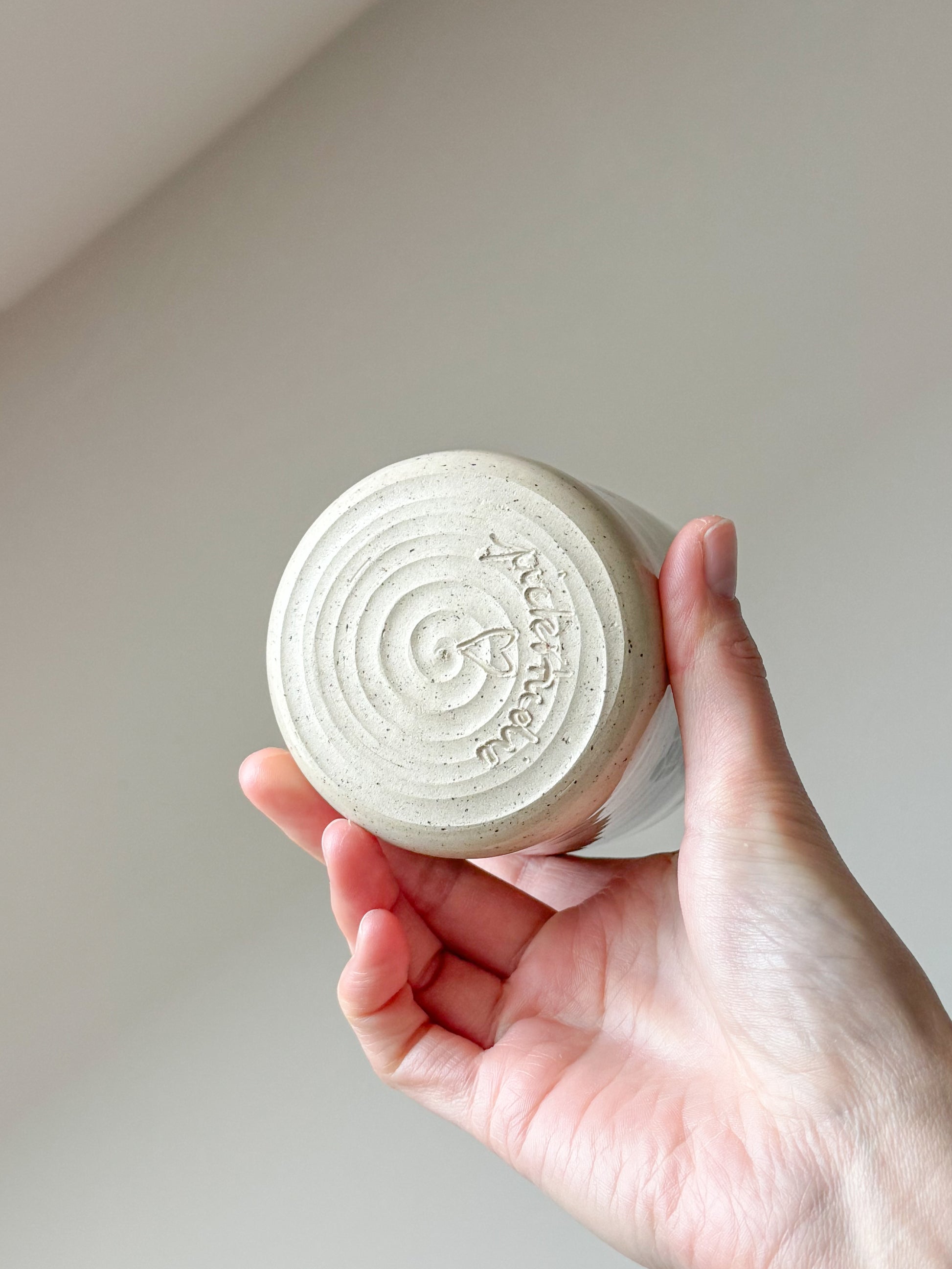Tasse en grès fabriquée et peinte à la main dans le nord de la France.